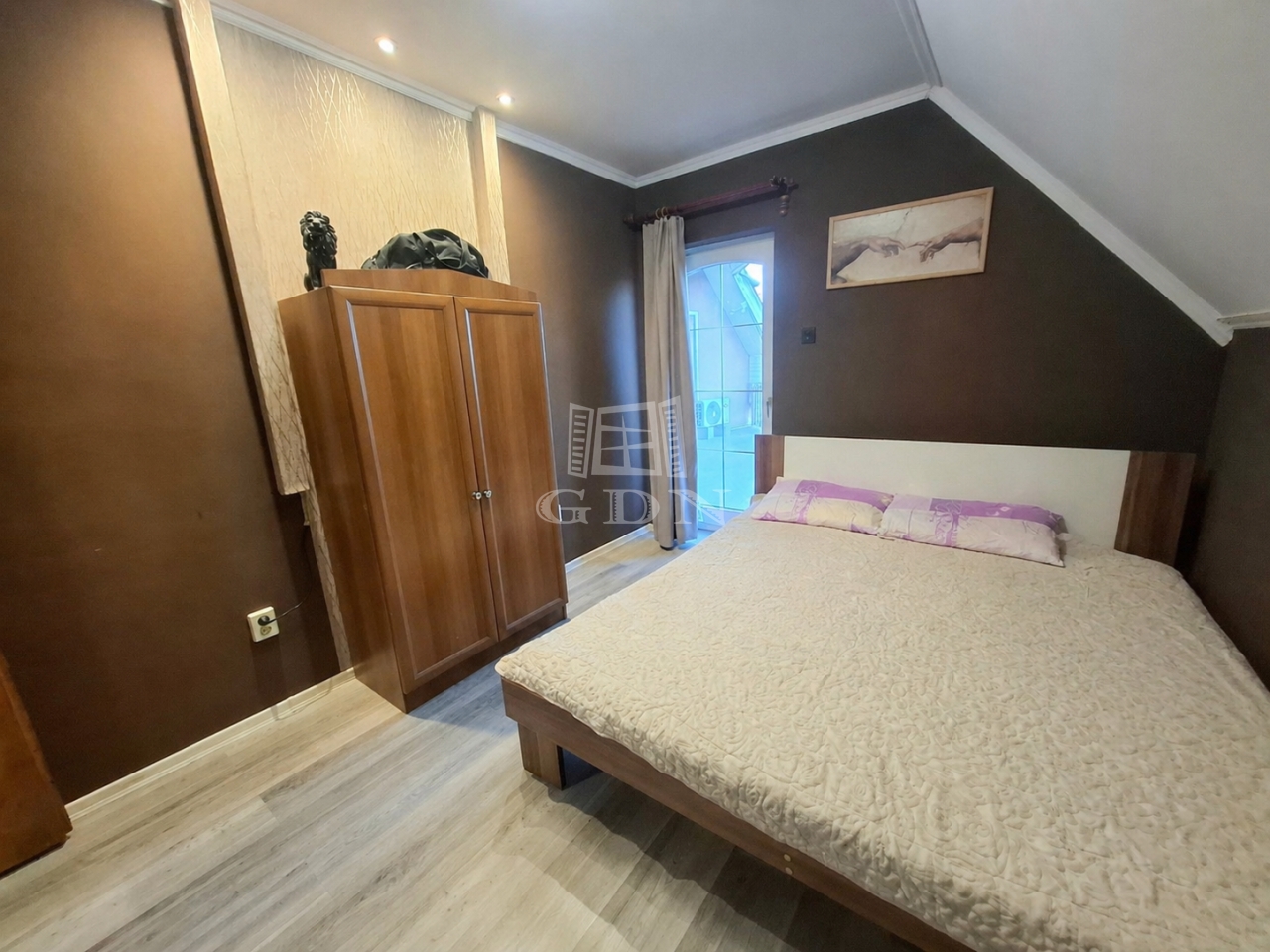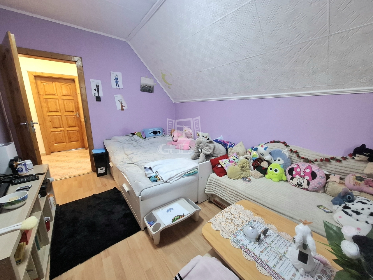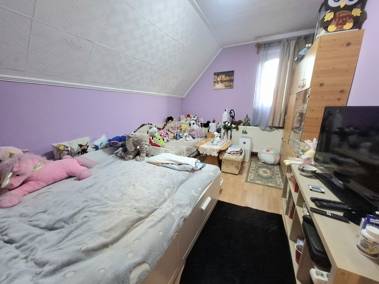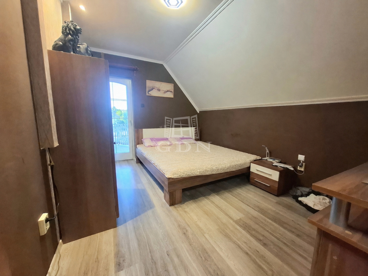 tetőtérben: három külön bejáratú hálószoba ebből kettő erkélyes, fürdőszoba sarokkáddal, gardrób, közlekedő dolgozó sarokkal.