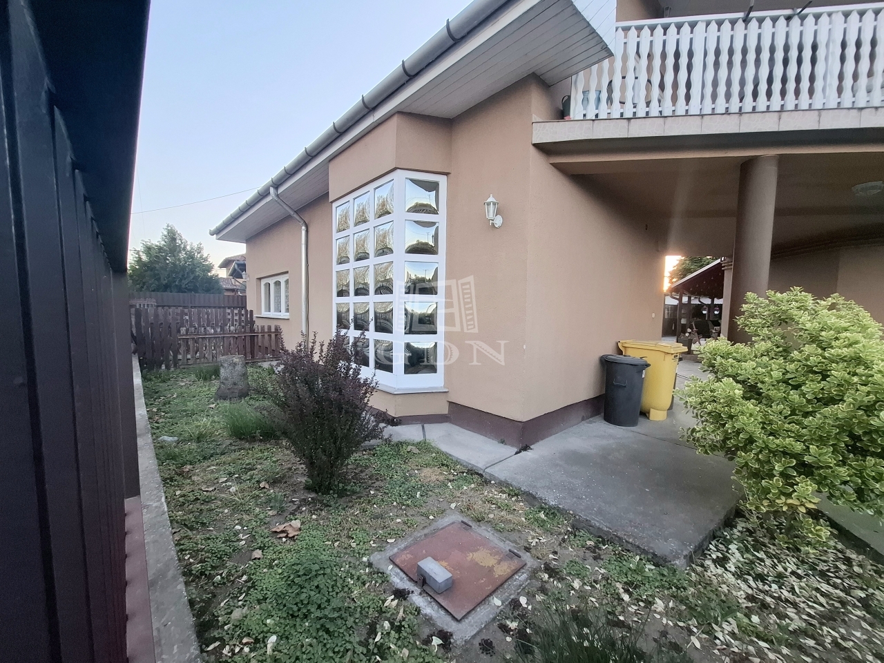A házhoz cca 80 nm saját használatú kert tartozik, gépkocsi beállási lehetőséggel.