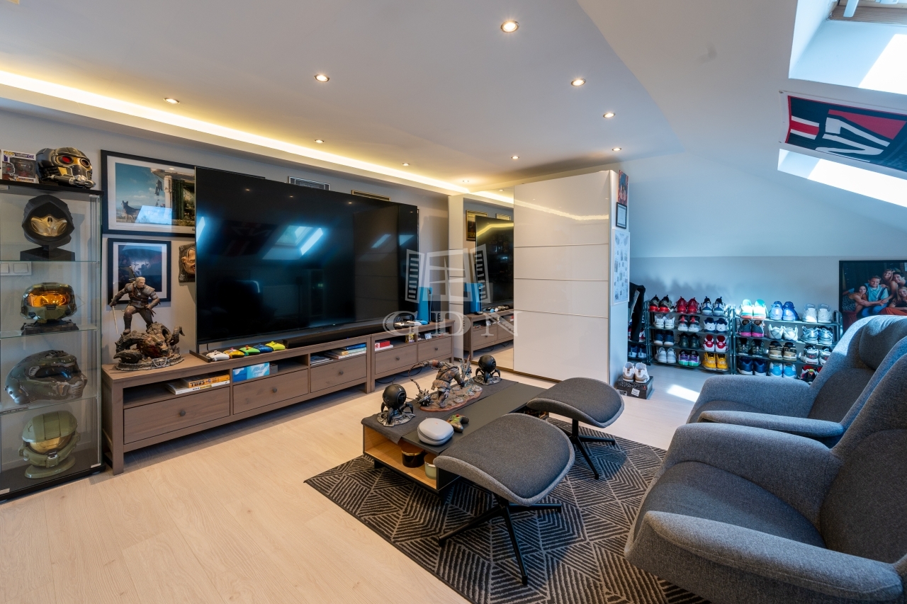 A KÉT LAKRÉSZT 15 NM-ES PIHENŐ SZOBA KÖTI ÖSSZE, amely igazi "chill" helyiség.
