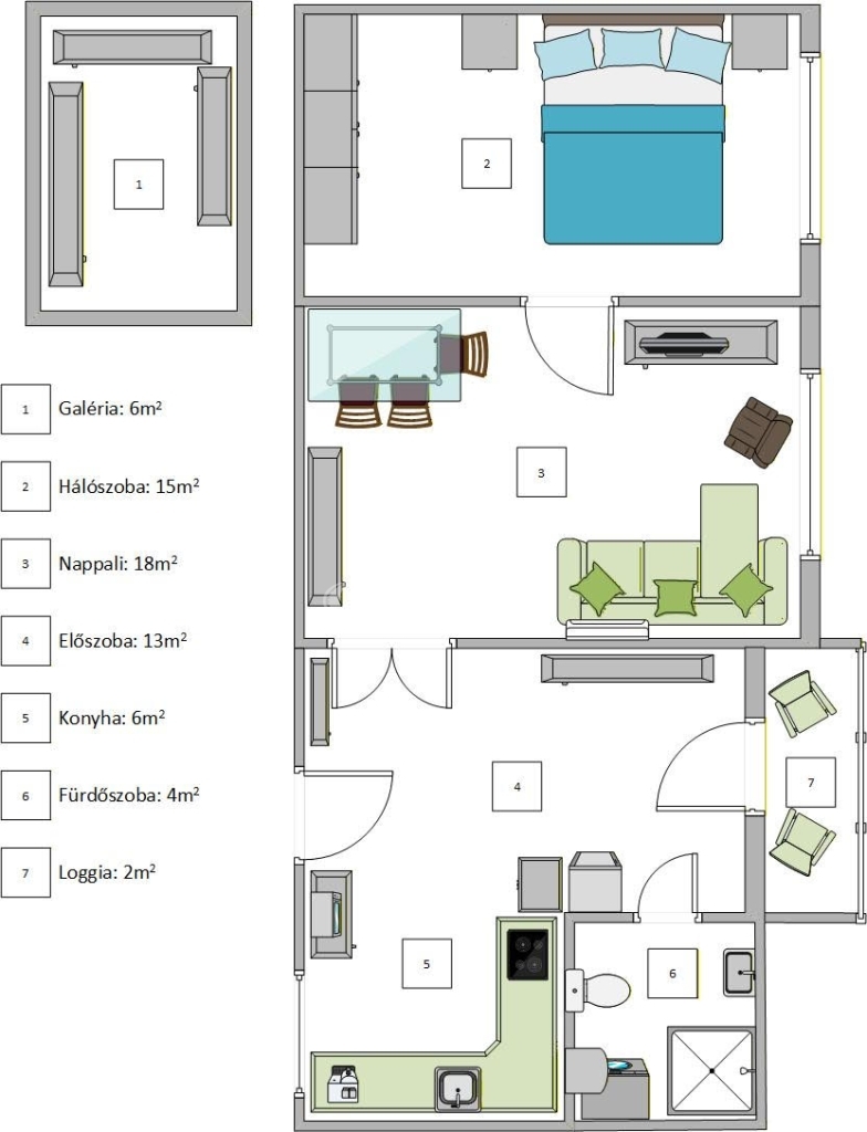 • valamint kialakításra került egy 6 m²-es álló galéria, amely praktikus plusz életteret biztosít.