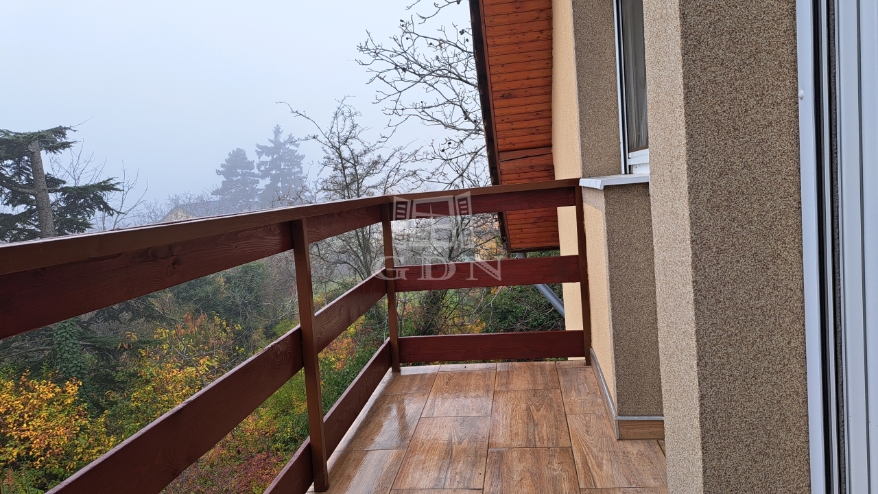 Az emelet két hálószobát, egy gardróbszobát, fürdőszobát és egy erkélyt kínál.