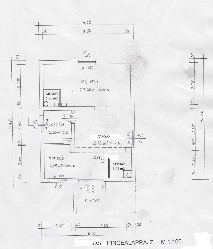 részben bútorozott, a műhelyként is használható pincében ipari áram van, a gépesített medence igazi felüdülés az egyre melegebb nyarakban.