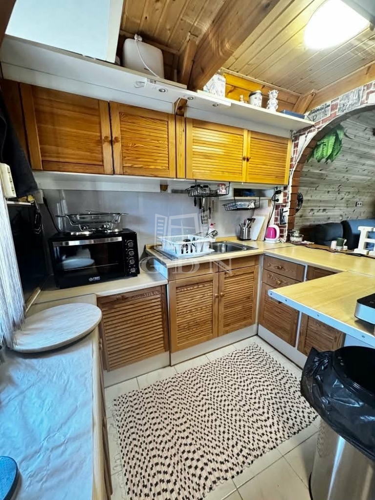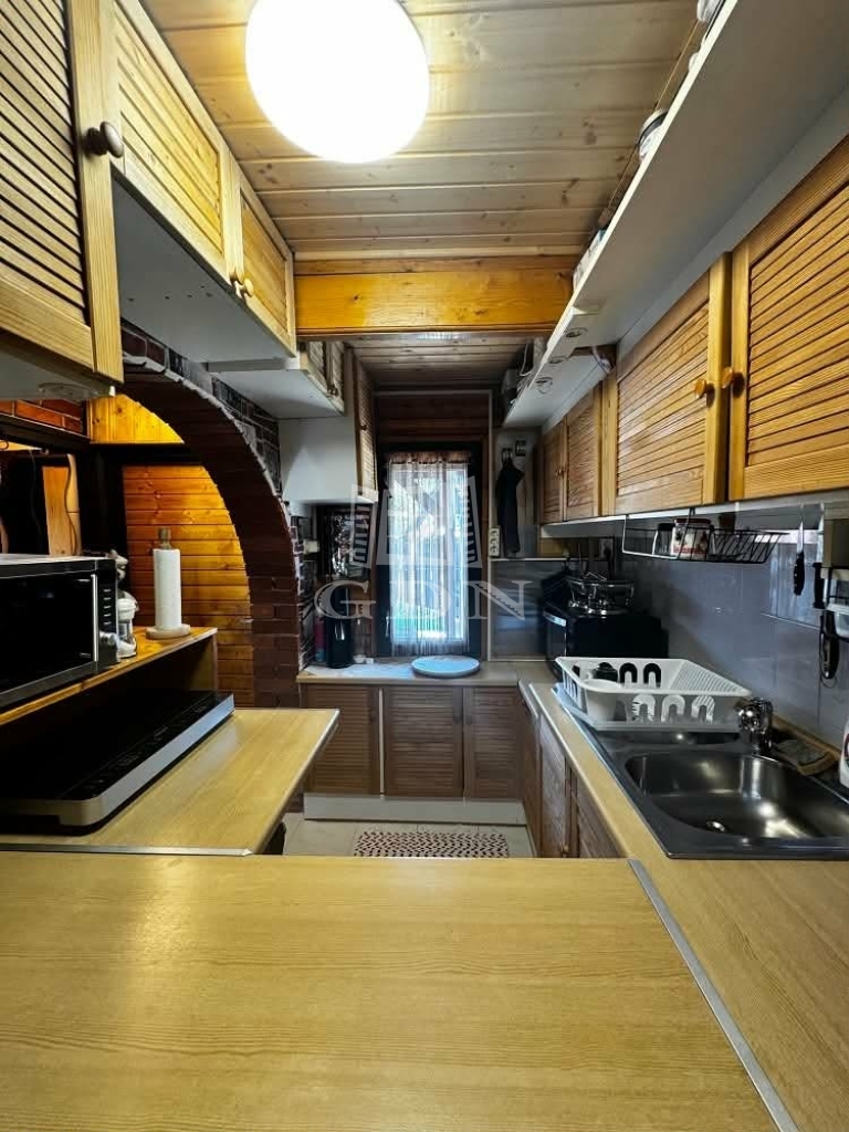 - Különálló, gépesített konyha ízléses fa frontokkal