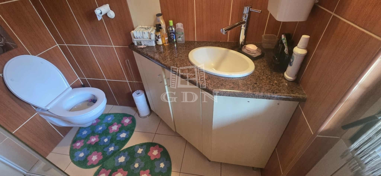 - Kiváló helykihasználású fürdőszoba (zuhanyzó, mosdó, toalett, mosógép számára is elegendő tér)