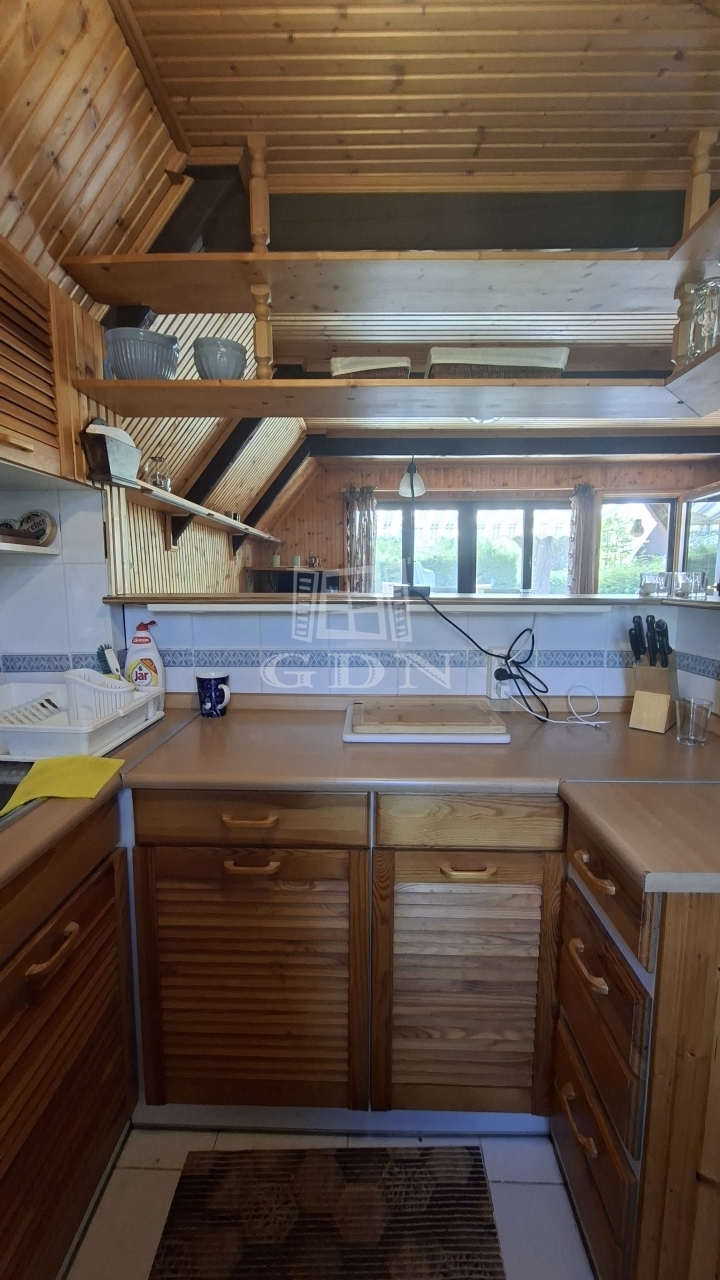 • Különálló, gépesített konyha ízléses fa frontokkal