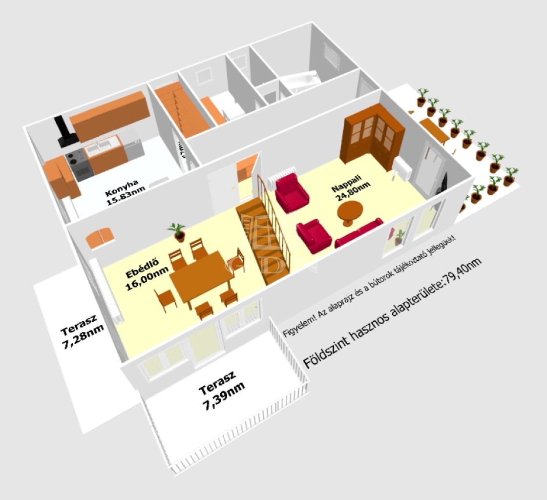 - a földszint hasznos alapterülete: 79,40nm,