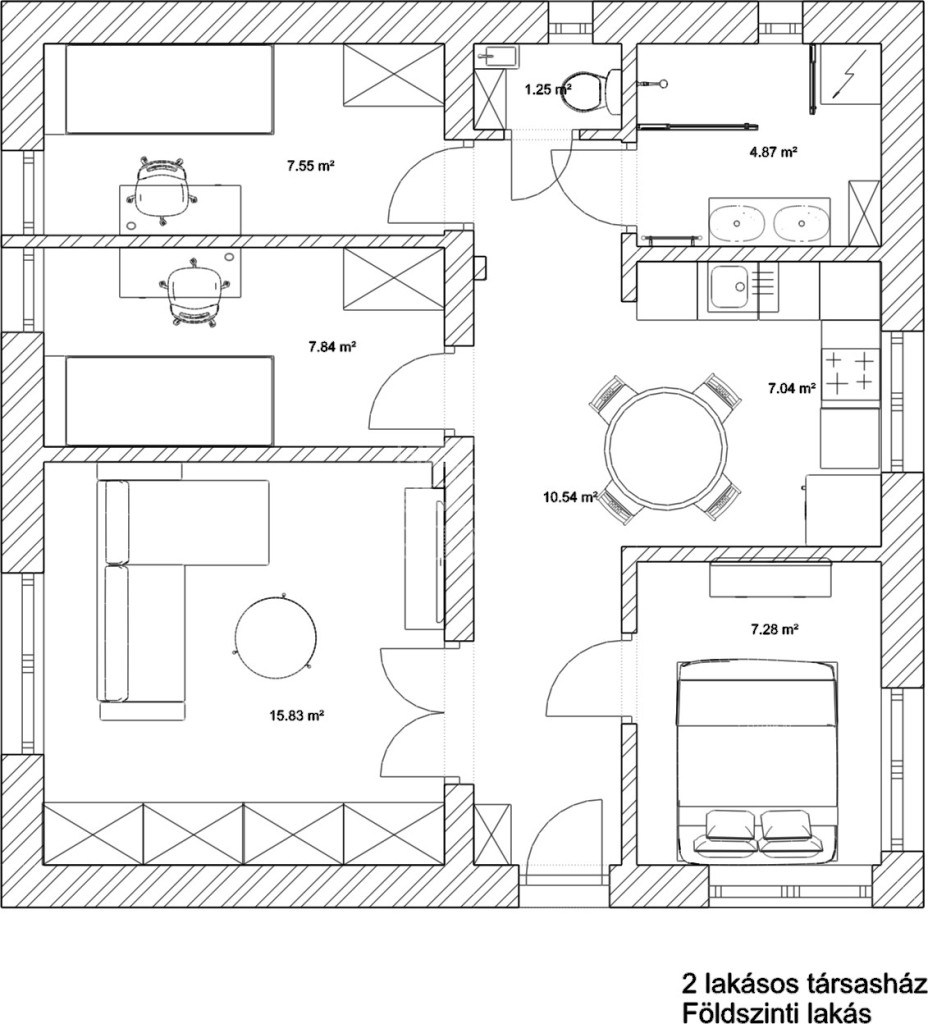 | 124 m2Alapterület | 4 + 2 Szoba |