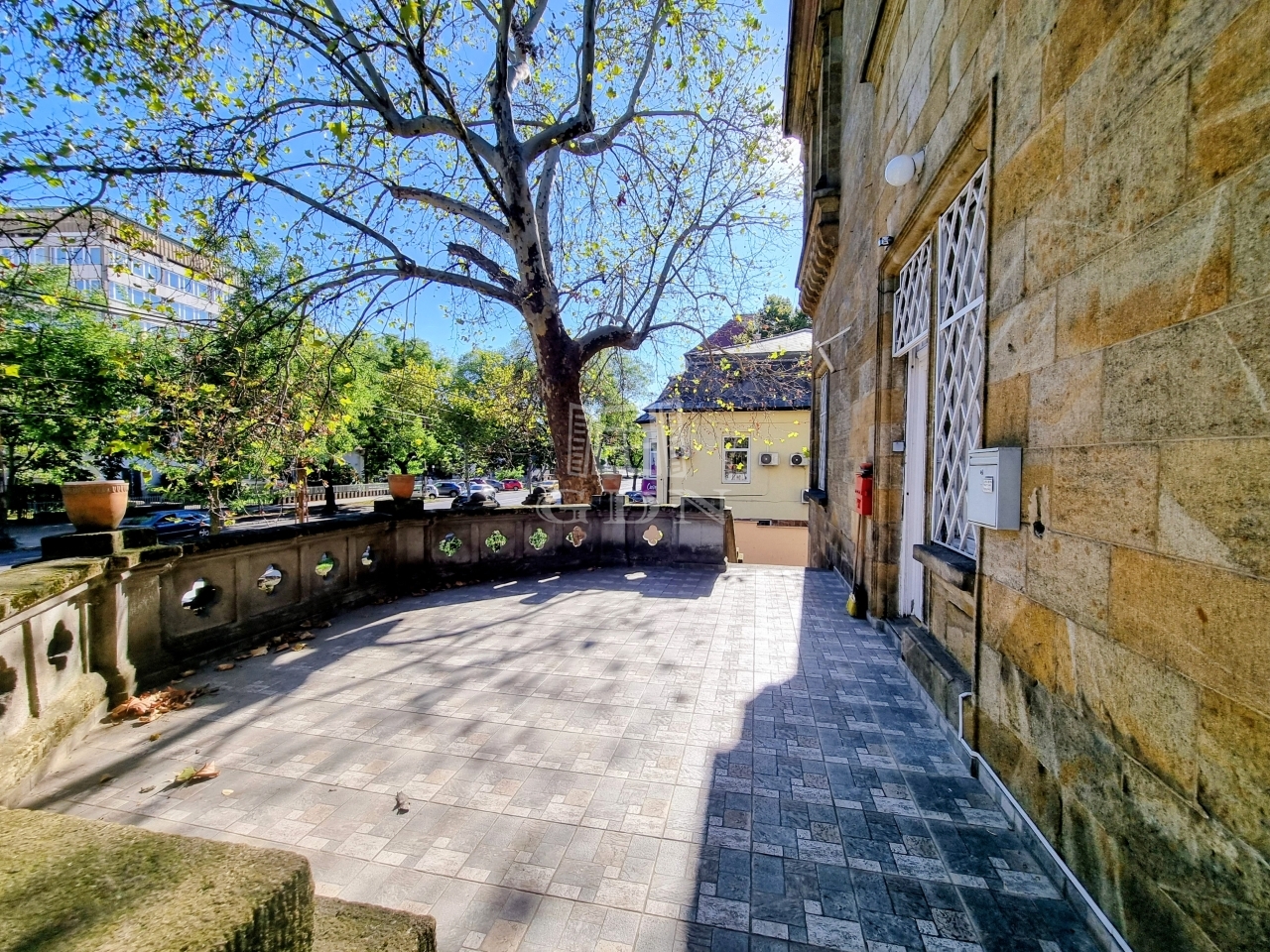 Az 1918- ban épült villa historizáló - eklektikus stílusban épült, az építész annak idején a házat saját magának tervezte, napjainkban folyamatosan karbantartott, állapot megőrzése, illetve javítása érdekében a társasház folyamatosan törődik vele, pályázatokon indul! Eladó ingatlanunk a magasföldszinti szinten helyezkedik el, (alaprajzon a lilával körbejelölt) egyik különlegessége, hogy a házba egy tekintélyes 33 nm-es külső teraszról jutunk be, majd a lakást egy zárt lépcsőházból közelíthetjük meg, ami a szomszéd ingatlannal kizárólagos használatban van.