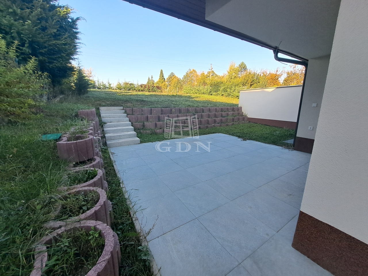 - A kert tereprendezése megtörtént, öntözőrendszer kiépítésére, füvesítésre és növénytelepítésre előkészítve