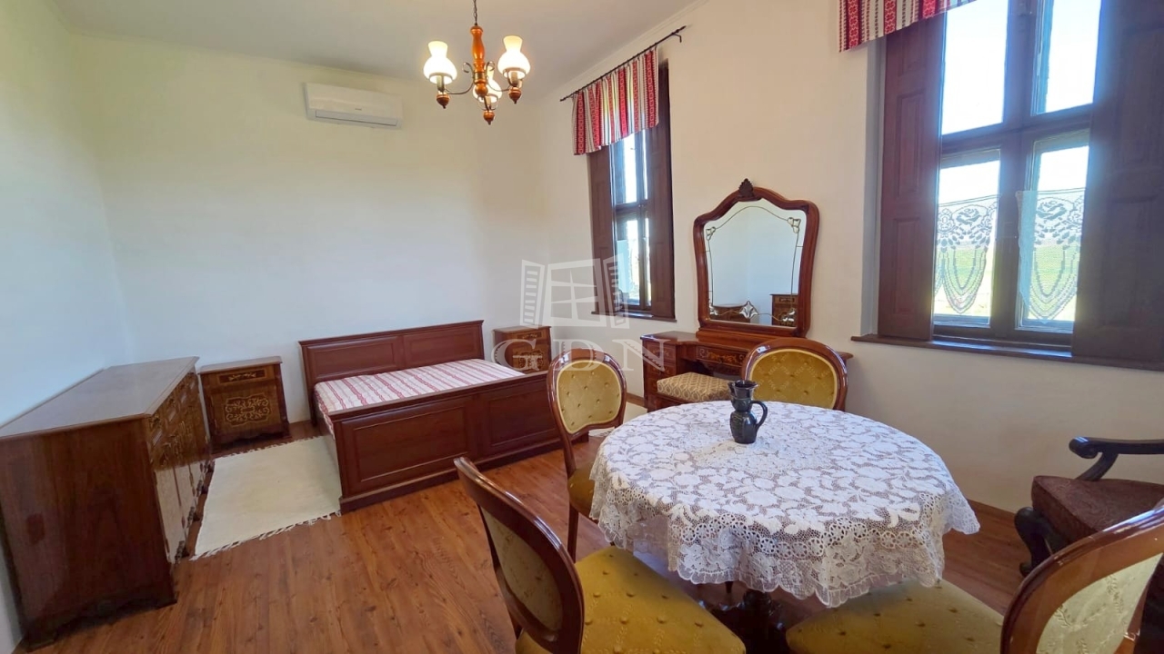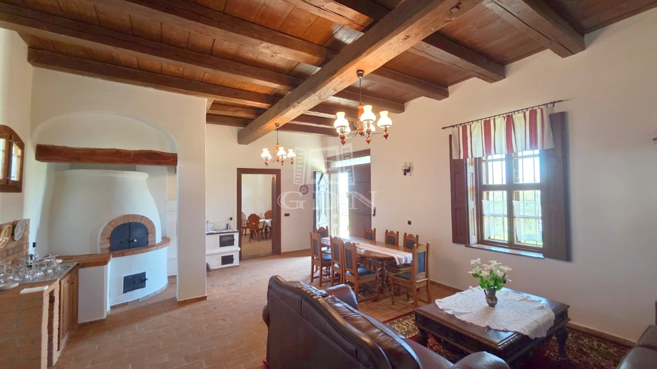 A közel 1 hektáros (9.786 m2) telek számos hasznosítási lehetőséget kínál. A 135 m2es, háromszobás lakóház stílusosan, korhű bútorokkal berendezett, azonnal költözhető.