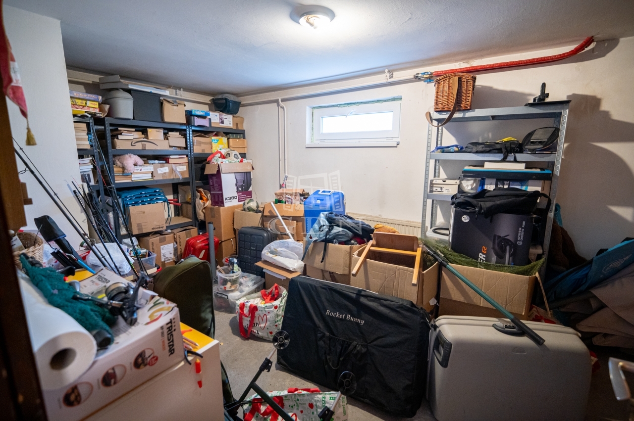 A pince/alsó szint, valamint néhány belső rész – például a nyílászárók, lépcsőház és kert – további felújításra szorul, így az ingatlan új tulajdonosa saját igényeire formálhatja az otthont.