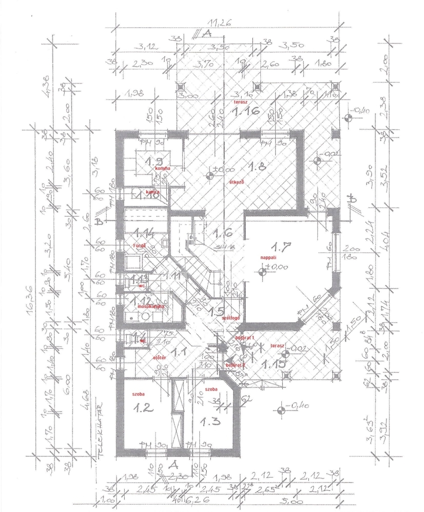 • Szobák száma: Tágas nappali, konyha-étkező (52 m²), 5 hálószoba (10 m²-13 m²)