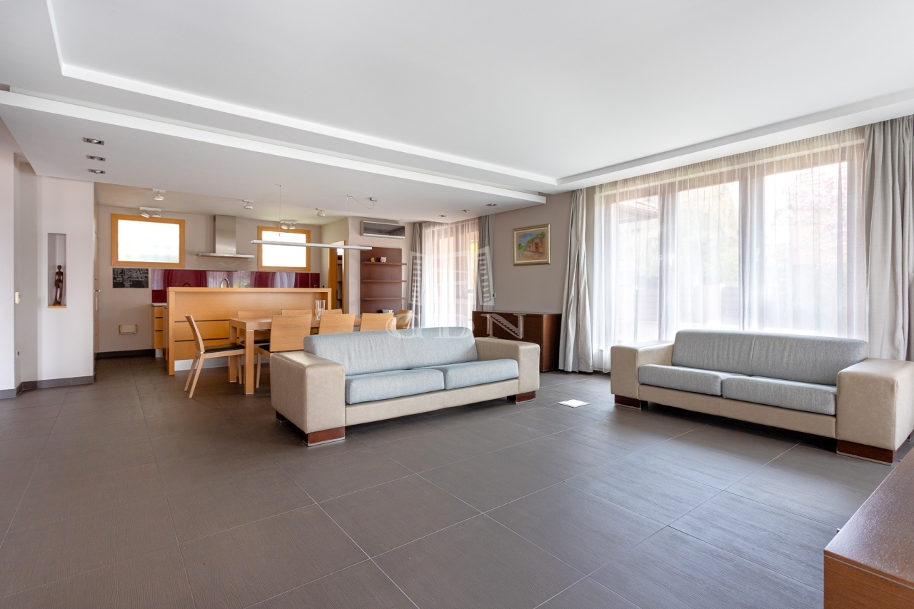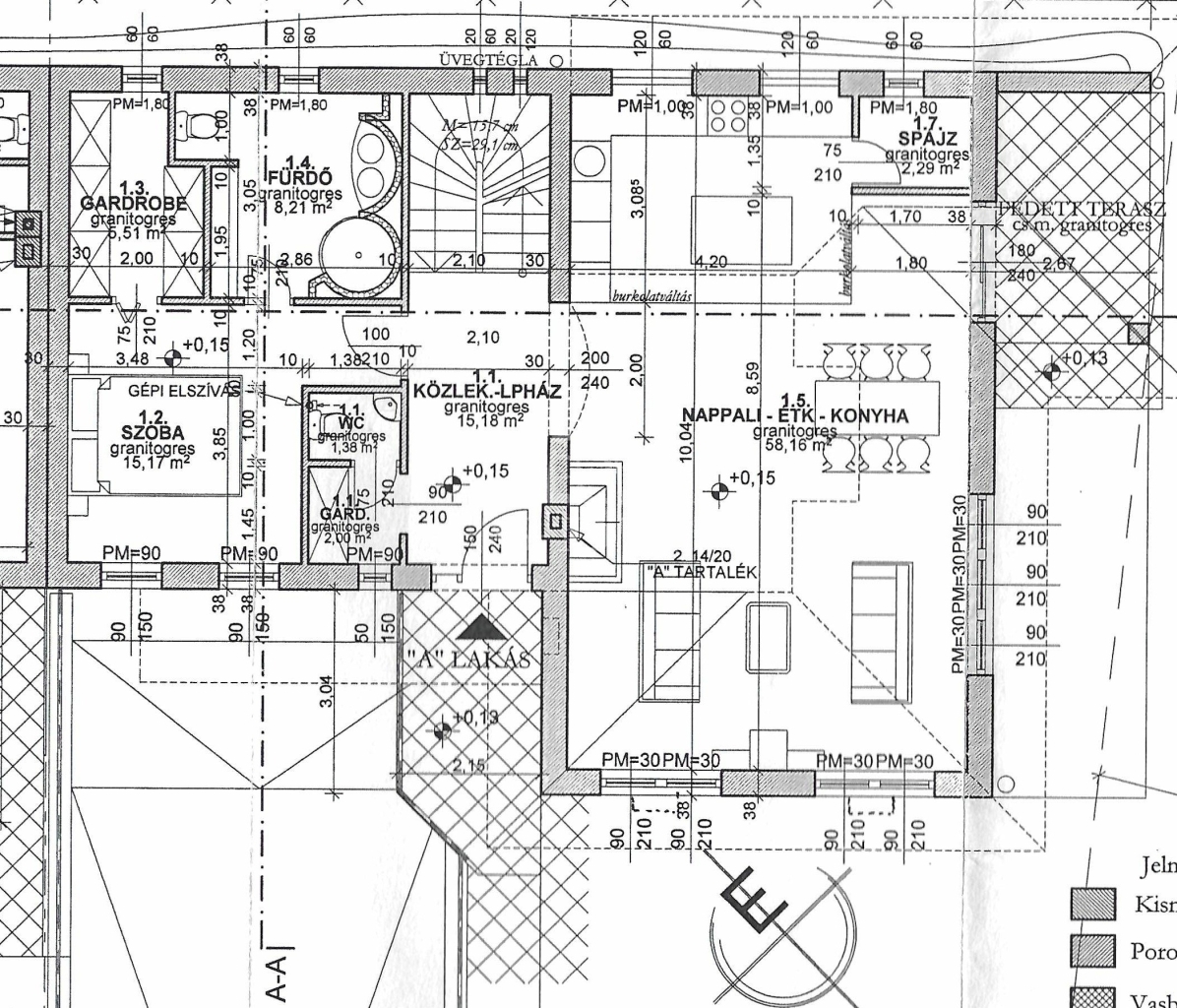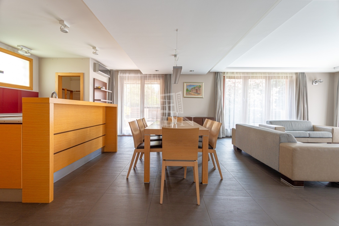 • Földszinten: Nappali + konyha + étkező (60 m²), 1 hálószoba gardróbbal, fürdőszoba wc-vel ( kád és zuhany is), vendég wc