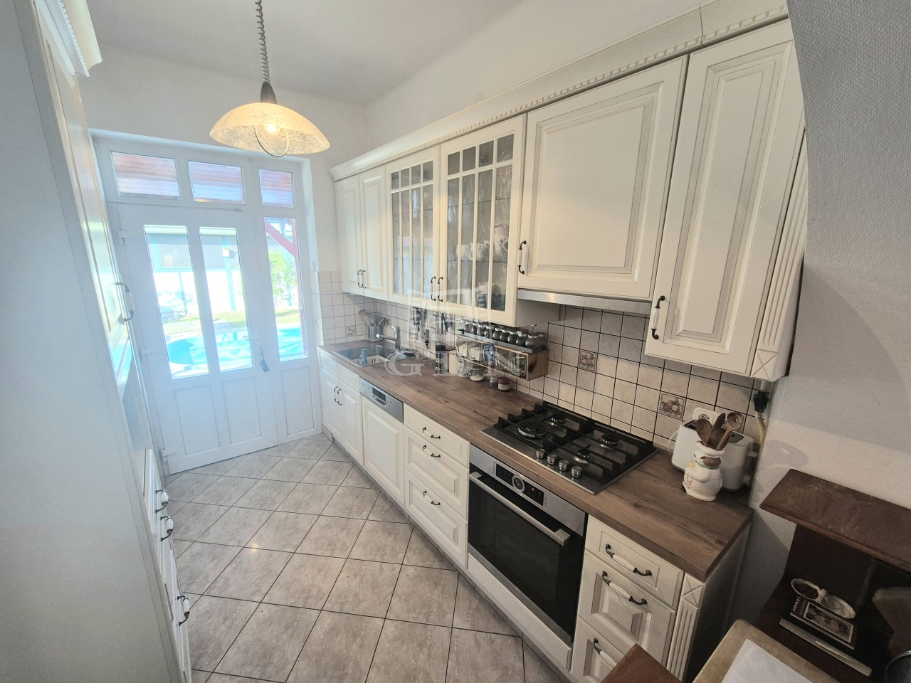 A 178 m2 alapterületű ingatlan földszintjén egy teraszkapcsolatos konyhát, méretes étkezőt, hálószobát, nappalit, fürdőszobát találunk.