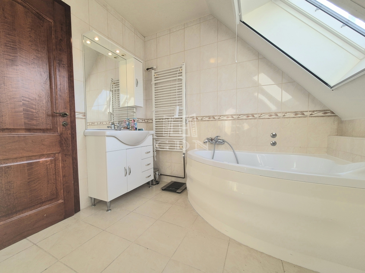 A jól kialakított, kellő belmagassággal rendelkező tetőtérben 4 különnyíló hálószoba, egy sarokkádas fürdőszoba, külön wc-bidével került kialakításra.