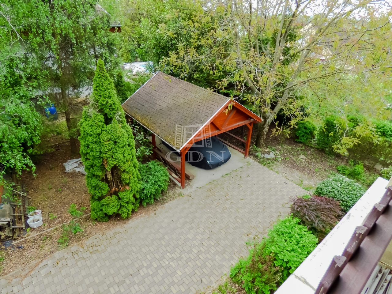 A fedett felszíni beálló és egy autó számára épült GARÁZS elektromos kapun keresztül közelíthető meg, viakolor borítású, továbbá a zárt udvaron belül cca. 4-5 autó is elfér.