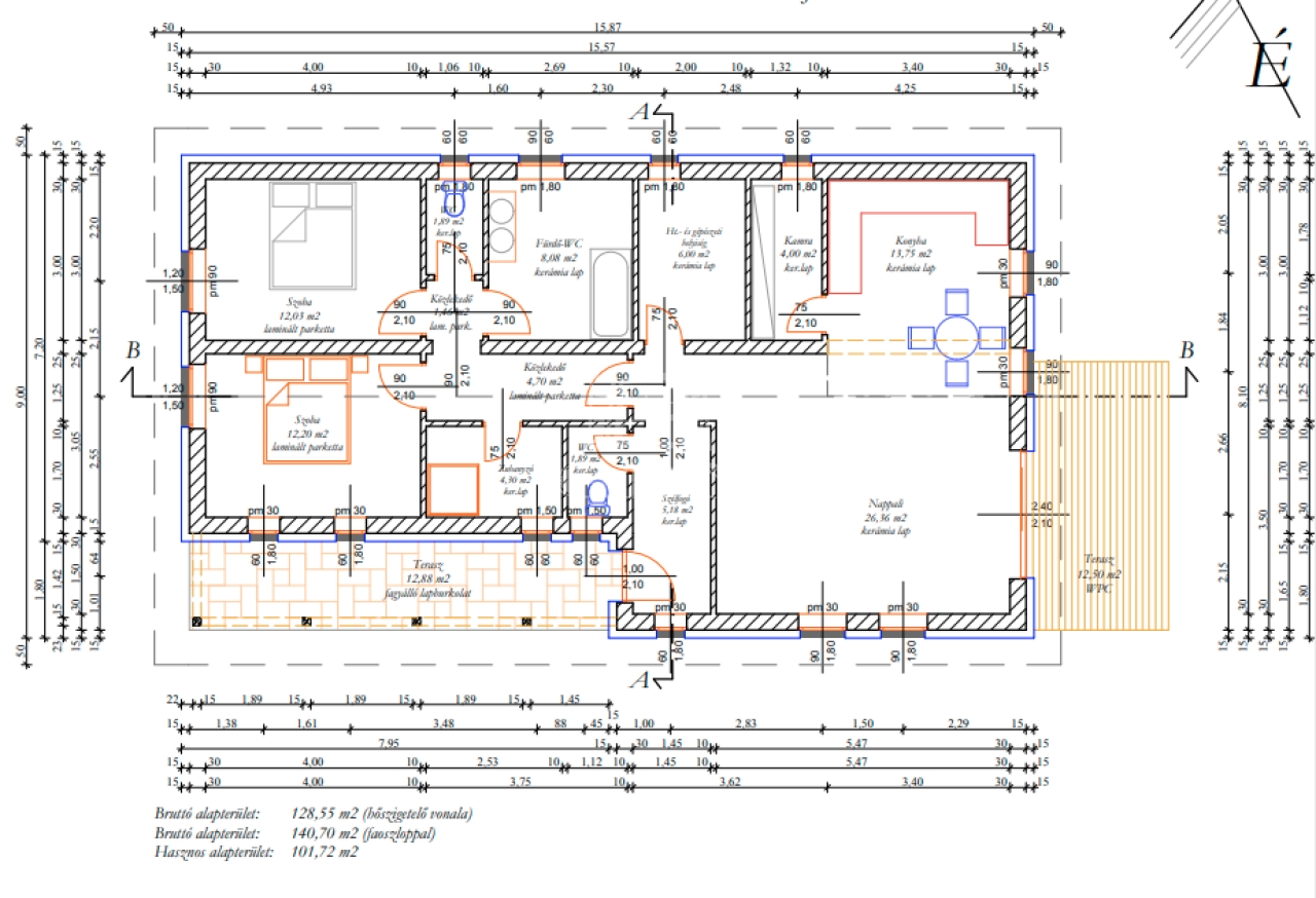 2,- nappali + 3 hálószobás kialakítás nettó 110 nm - 88.000.000.-Ft,