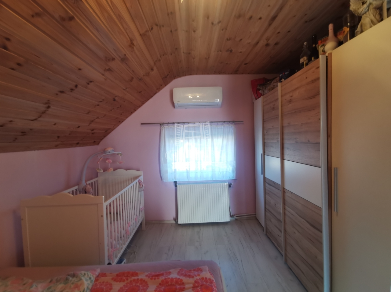 A ház felső szintjén található 2 hálószoba, valamint egy kényelmes nappali, amely tökéletes a pihenéshez. Innét nyílik az erkély, melyről csodás városi panoráma tárul elénk.