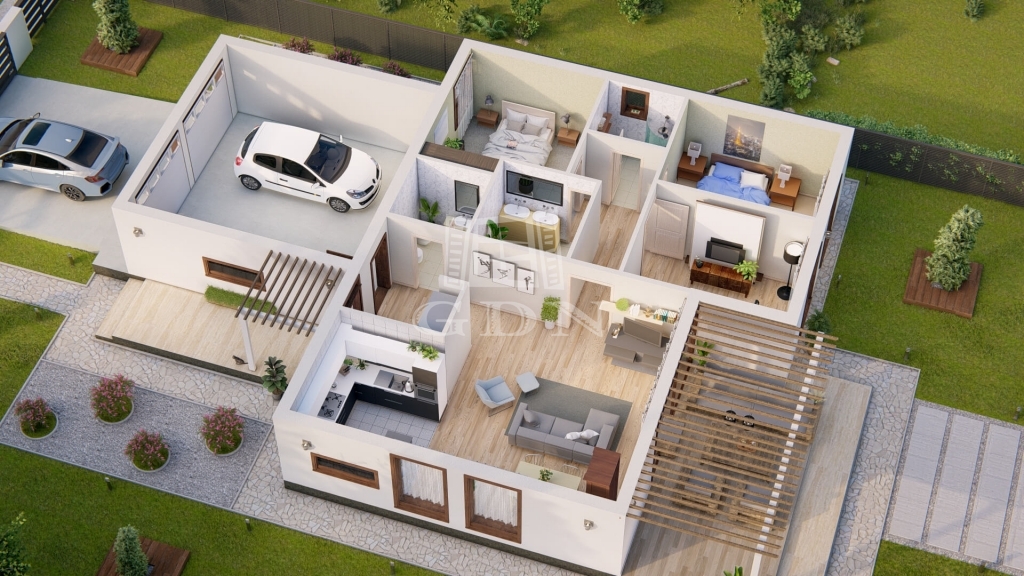 A hirdetésben szereplő ingatlan a Neptunus típusház. A Neptunus ház ára a kulcsrakész állapot alapján került kiszámításra.