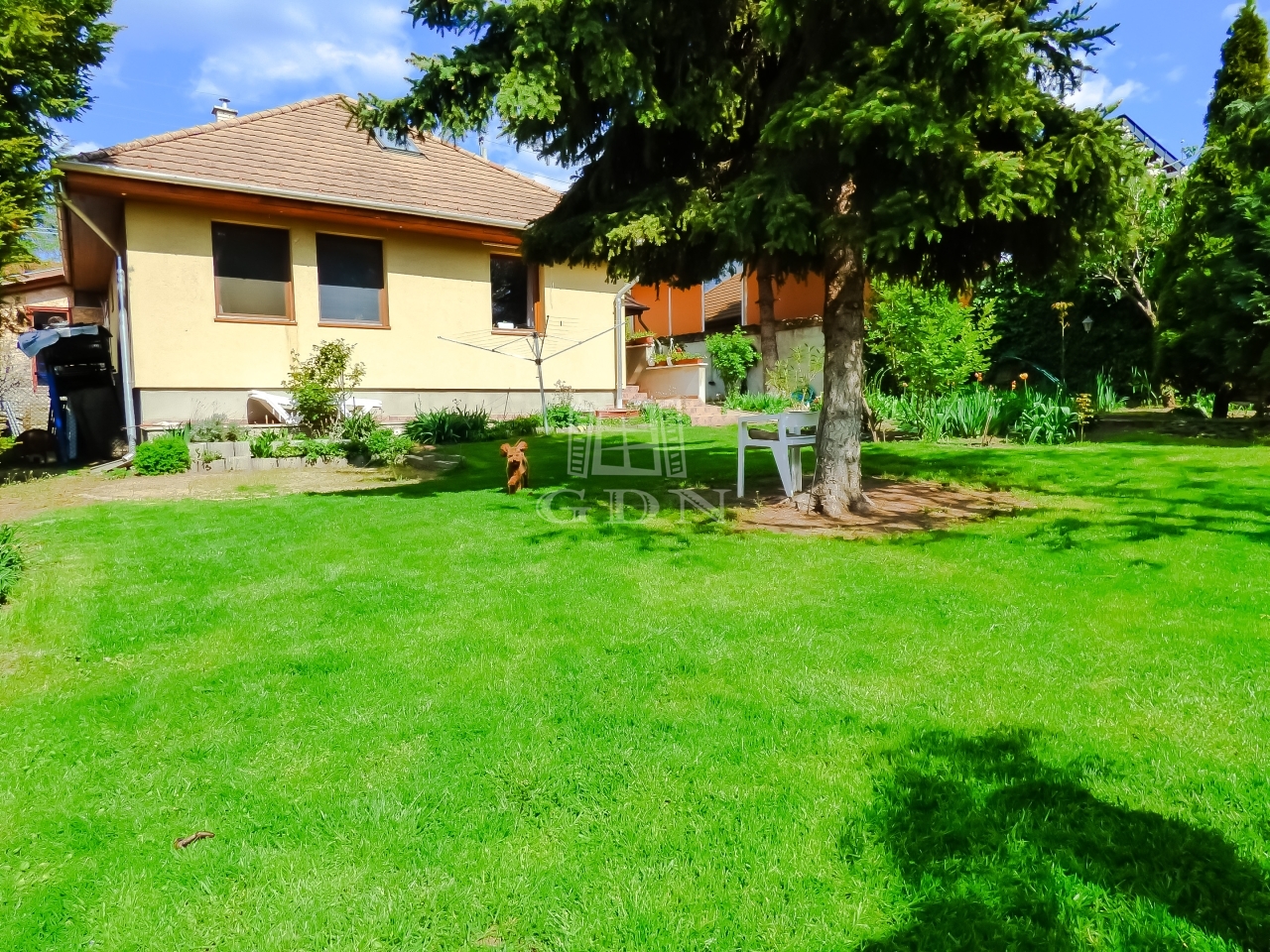 A kert gondozott, rendezett, kikapcsolódásra, pihenésre kiválóan alkalmas, az öntözés, esetlegesen egy medence feltöltése 38 m mély fúrt kútról megoldott.