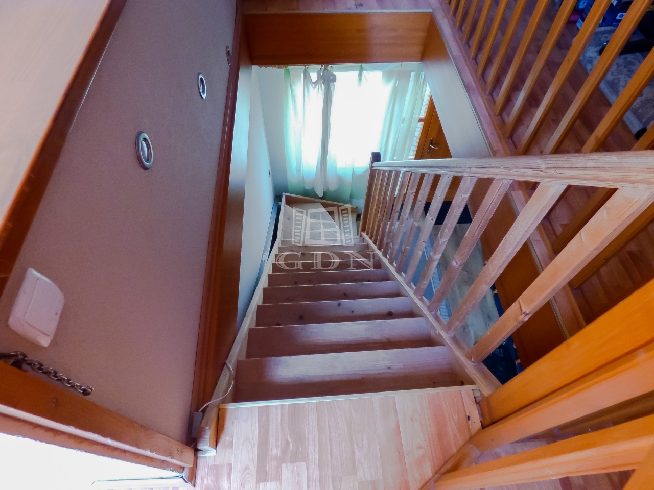 Az emelet nagy nappali, hálószoba, konyha (amely jelenleg gardrobeként funkcionál), fürdőszoba kialakítású.