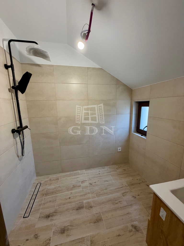 Az emeleti szinten két hálószoba, egy fürdőszoba és egy erkély található, már elektromos redőnyökkel felszerelve.