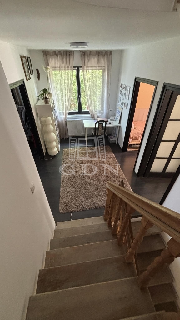 Emeleten : 70 négyzetméteren 2 hálószoba, 1 dolgozószoba, fürdőszoba káddal, tusolóval, külön wc