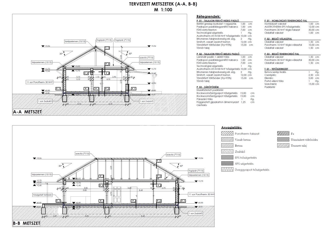 A Porotherm 30 N+F téglából épülő tartószerkezeti falak, a betonkoszorú és a fa födémes tetőszerkezet hosszú távú stabilitást biztosítanak. A kiemelkedő hőszigetelésről 10 cm-es polisztirol lábazati, 12 cm-es grafitos homlokzati, valamint 30 cm-es ásványgyapot födémszigetelés gondoskodik.